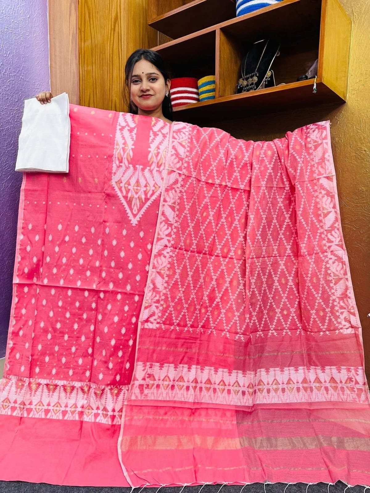 এতিহ্যবাহী তাঁতের হাফ সিল্ক জামদানী।