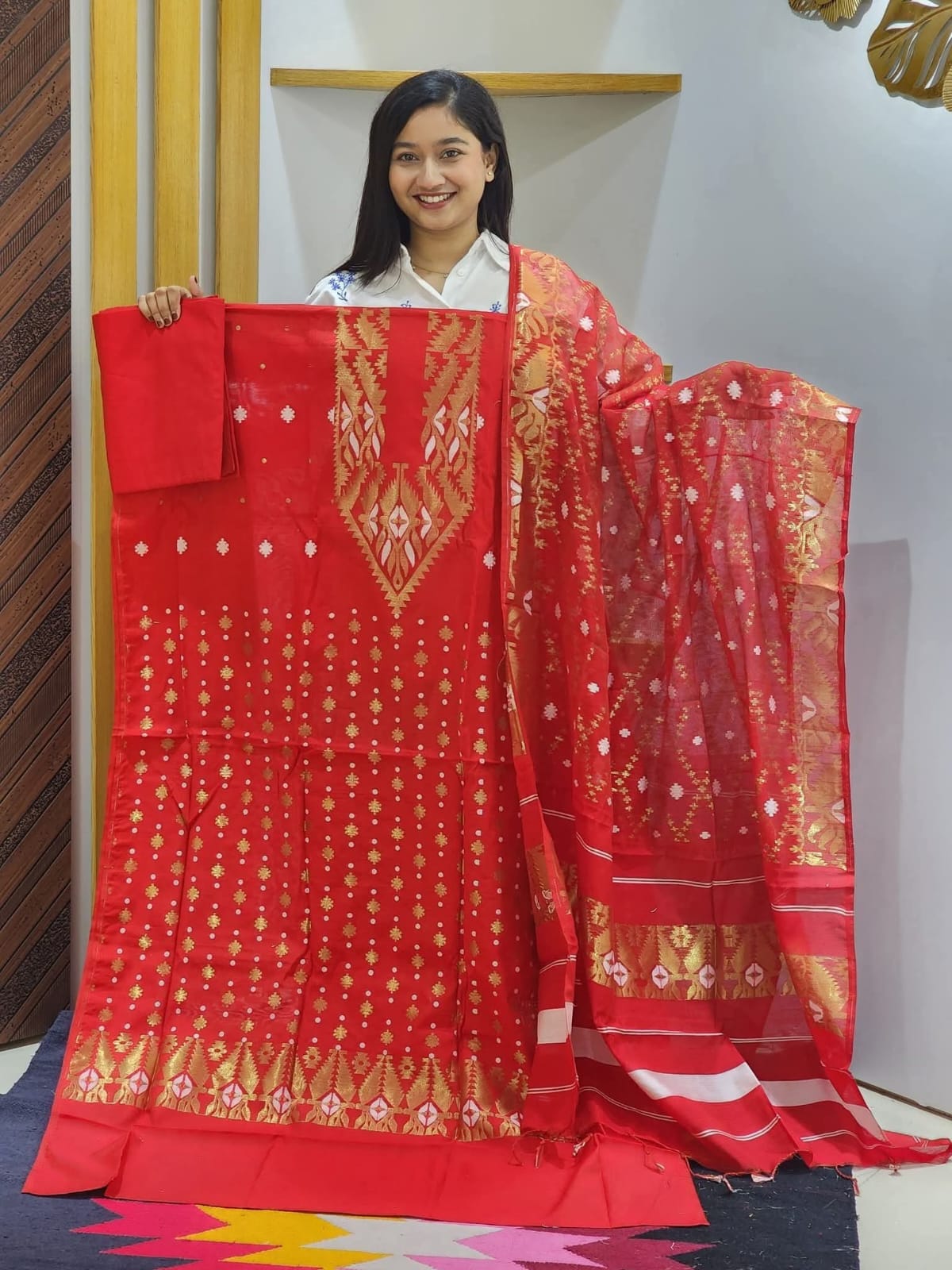 এতিহ্যবাহী তাঁতের হাফ সিল্ক জামদানী।