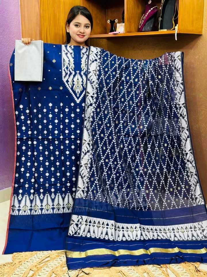 এতিহ্যবাহী তাঁতের হাফ সিল্ক জামদানী।